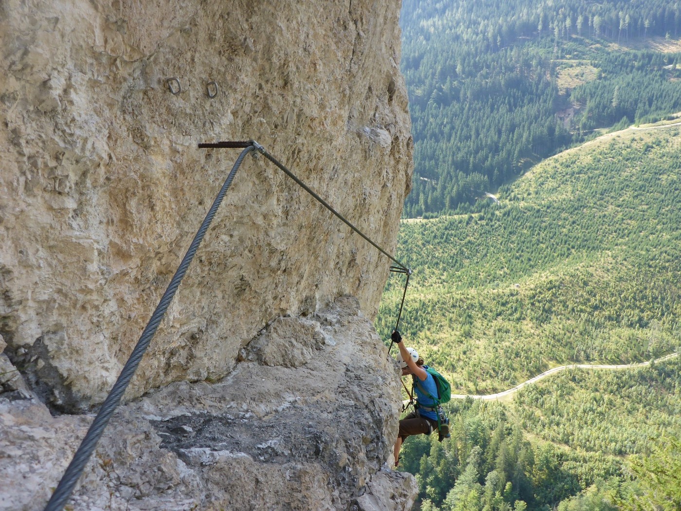 Bis zu diesem Abschnitt ist der Klettersteig von den Schwierigkeiten moderat (max. B) und auch für Anfänger geeignet.