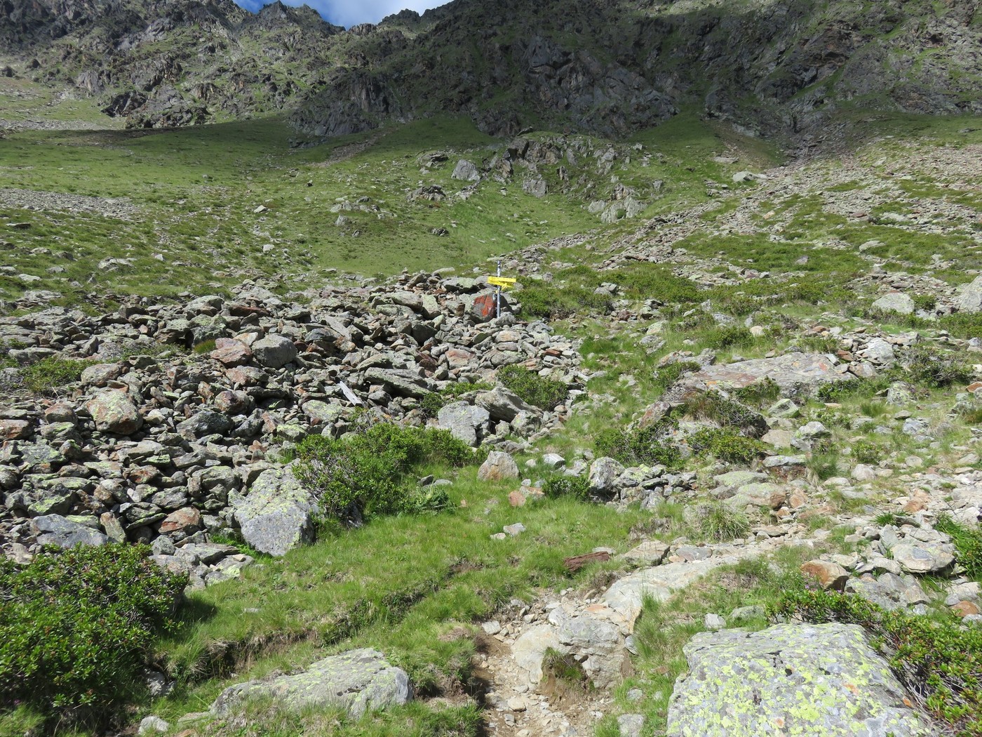 Im Kruckelkar führt der Weg elegant immer an Bergrücken entlang und ist somit sehr gut zu gehen. Das Kruckelkar verlässt man über eine Steilstufe, dort gibt es kürzere Stellen kletternd zu überwinden (max. UIAA I).