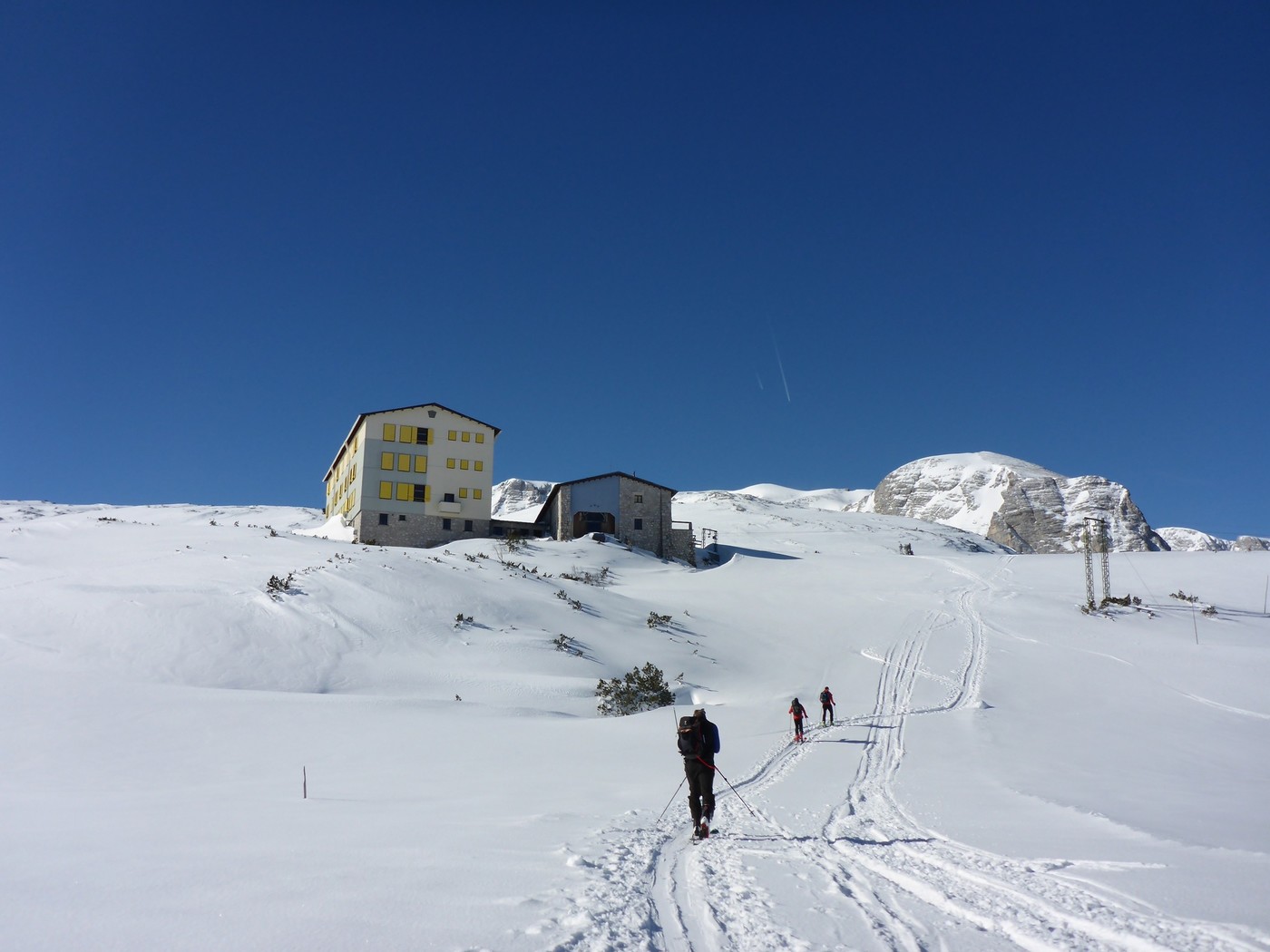 Von der Symonyhütte entweder über den Hang vor der Hütte oder westlich der Hütte zum präparierten Weg und weiter zur Gjaidalm. Es gibt auf dem Weg einige kurze Gegenanstiege (auffellen lohnt nicht).
