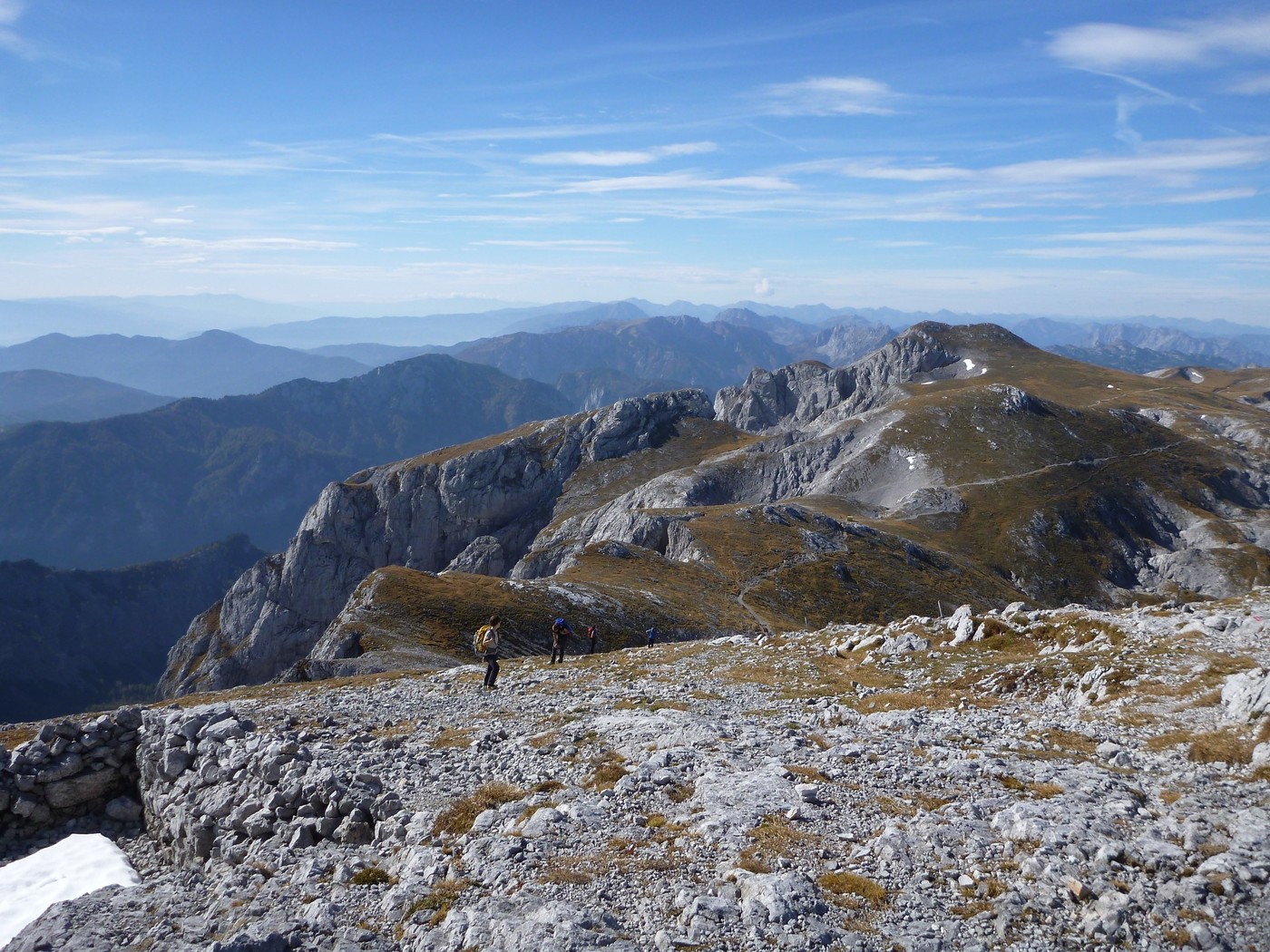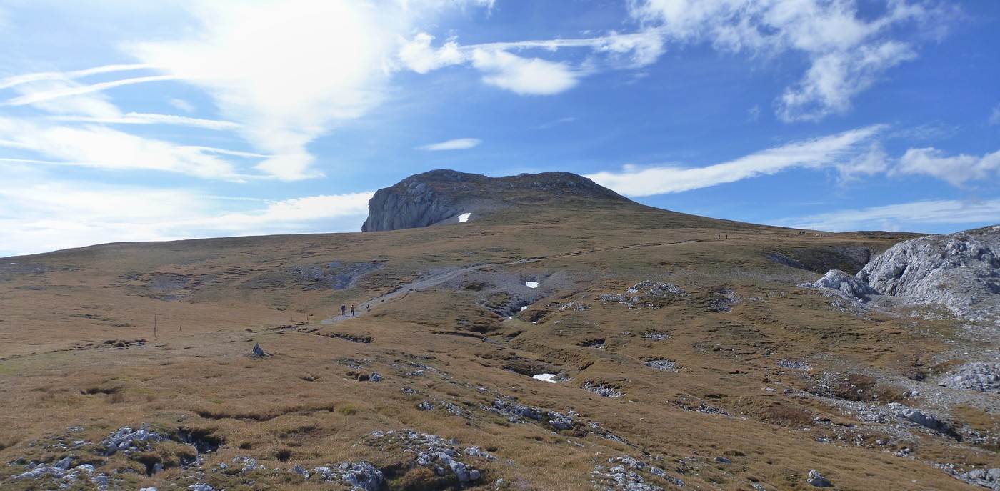 Vom Gipfel geht man bergab zurück in Richtung G'hacktkogel und weiter (Wege Nr. 801, 805) zum Rauchtalsattel. Über die Hundsböden gelangt man vorbei am Zinken hinunter in den Häusltrog und letztendlich zur Häuslalm. Von der Häuslalm wandert man über Weg Nr. 840 zurück zum Bodenbauer.
