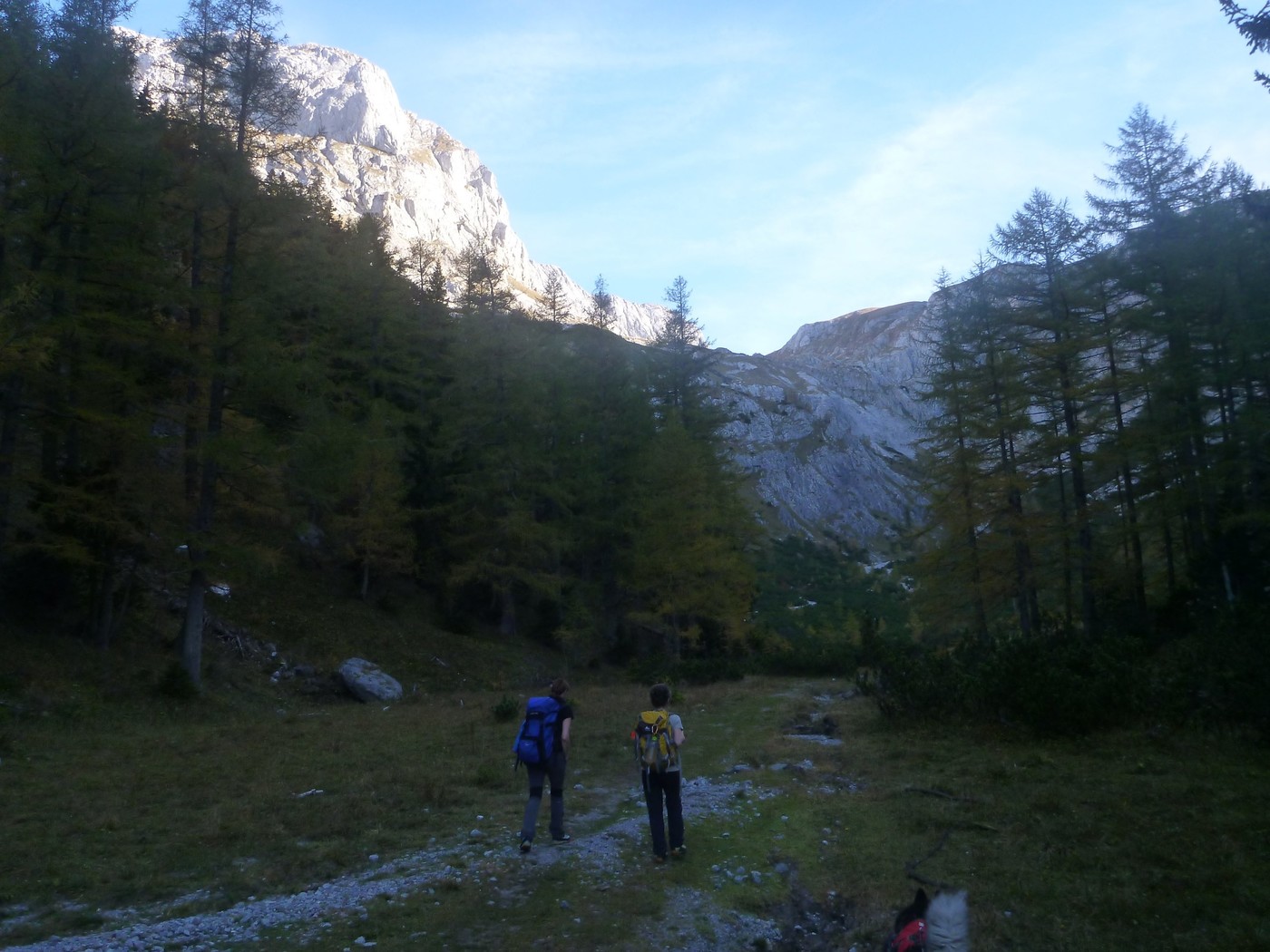 Vom Bodenbauer (Parkmöglichkeiten) startet man in Richtung Trawiestal (Weg Nr. 839), vorbei an den eindrucksvollen Hundswänden bis zur ersten Steilstufe. Man wandert weiter ins Trawiestal unter dem Wetzsteinkogel vorbei bis zum Talschluss. Vom Talende führt der Weg steil aus dem Tal in Richtung des G'hackten. Über Leitern und versicherte Stellen (A/B) gelangt man auf die Hochfläche, vorbei an der Fleischer Biwakschachtel leitet der Weg weiter zum Hochschwabgipfel.